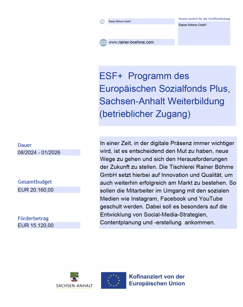 Tischlerei Rainer Böhme GmbHSchachtstraße 33D-06526 Sangerhausen